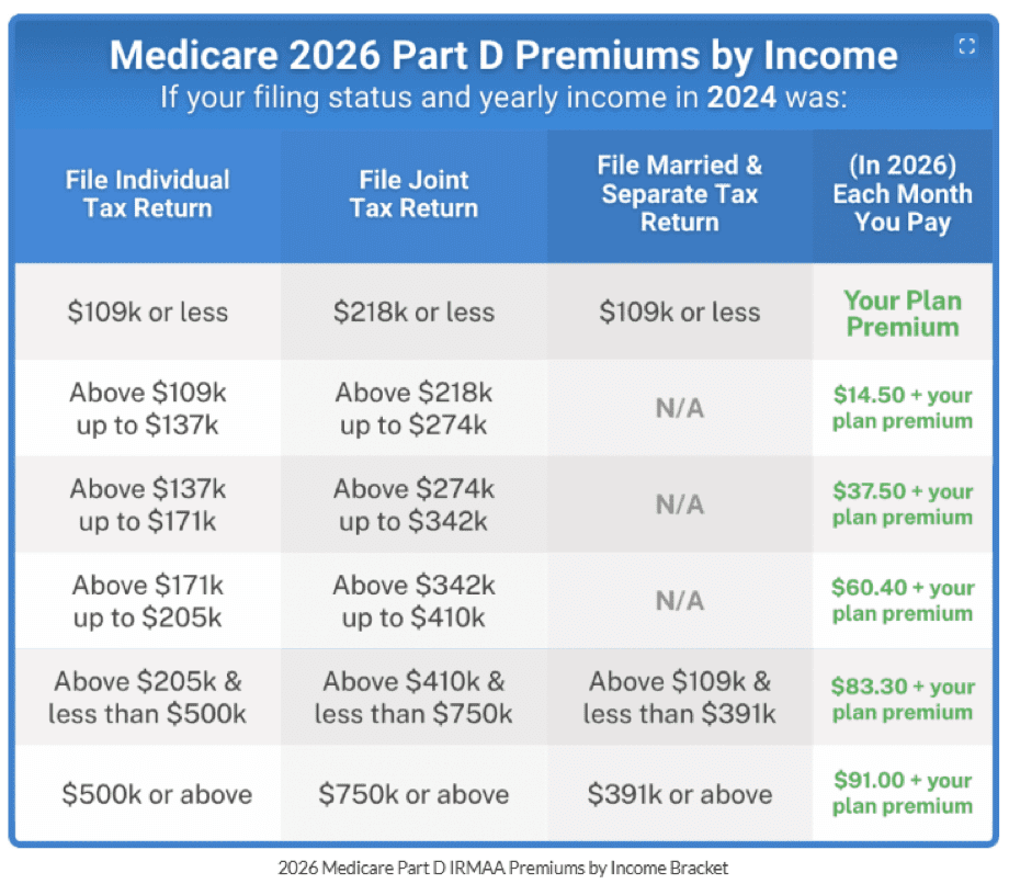 The surcharge is called IRMAA, which stands for Income-Related Monthly Adjustment Amount. This applies to both Traditional Medicare (Part B and Part D) and Medicare Advantage plans.